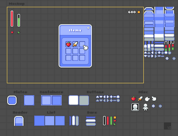 this asset is a small template guide for creating cute generic ui reutilizing a handful of 9-slices. this current mockup includes very simple examples of: